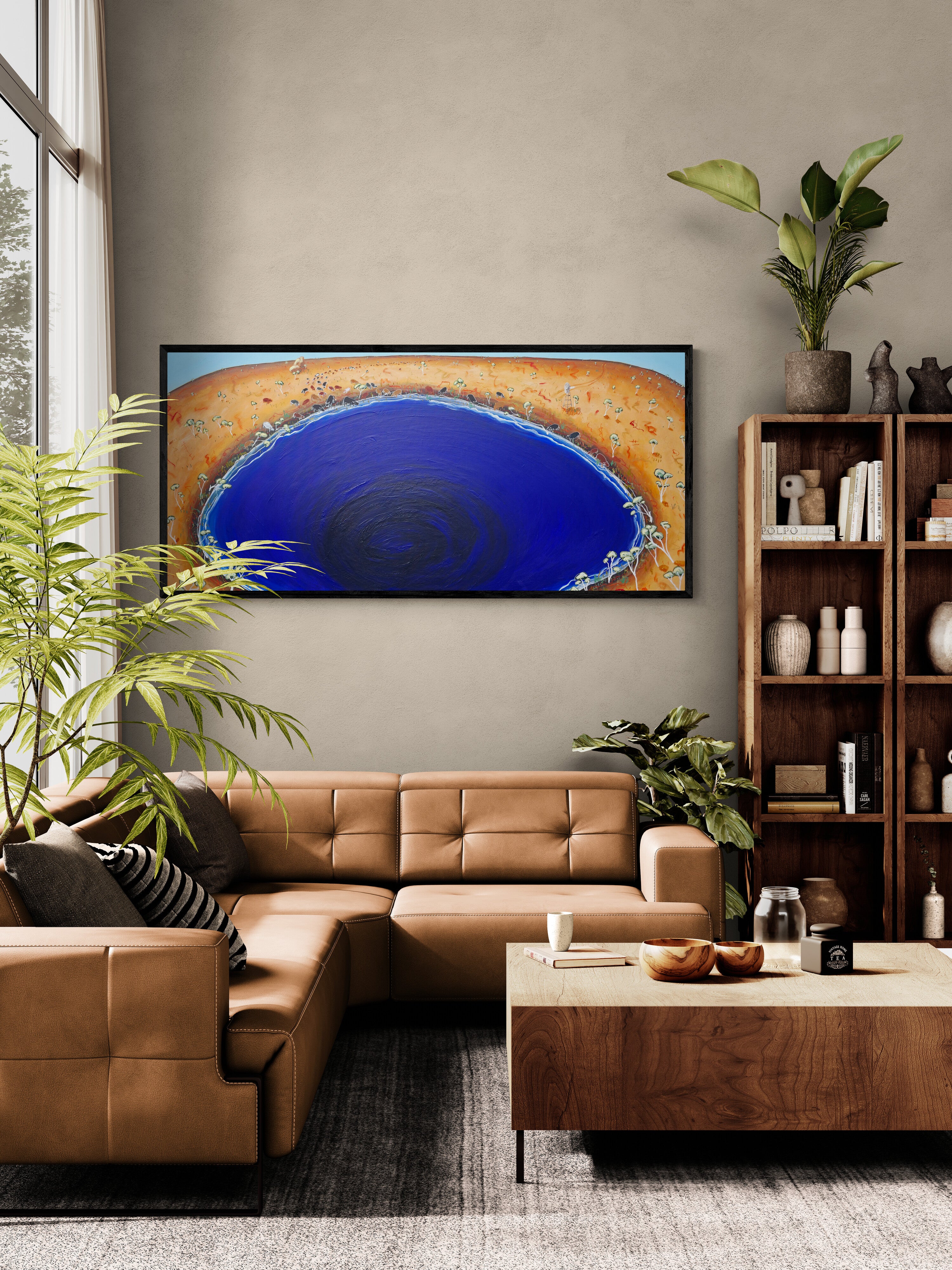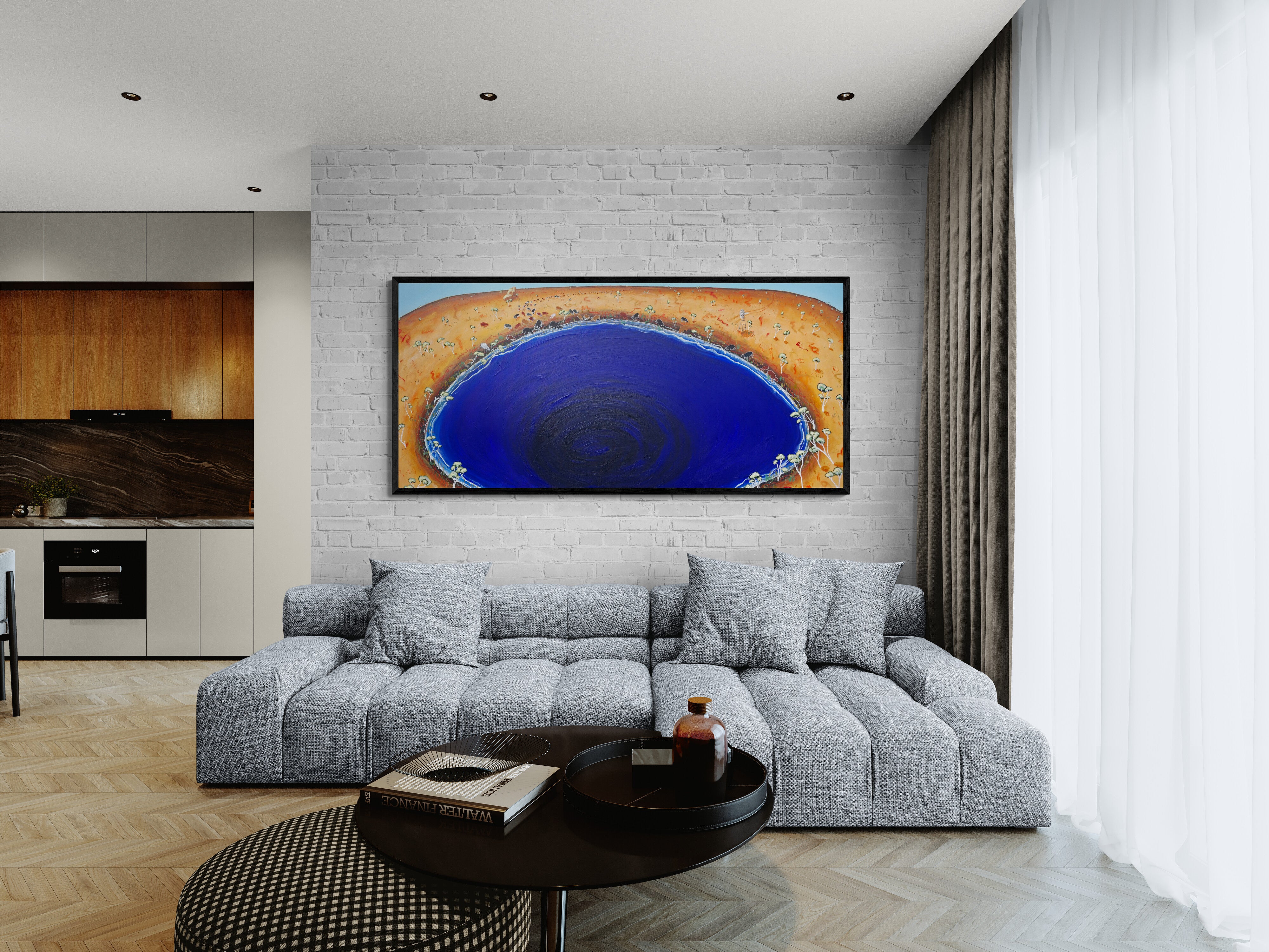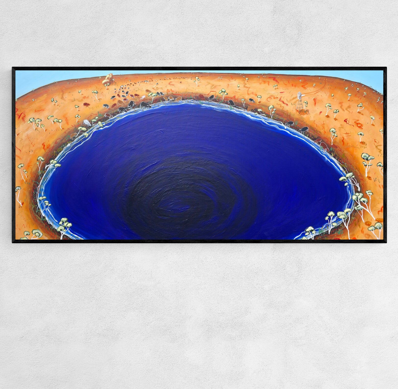 204 x 94cm | Acrylic and oil stick on canvas | Framed in black stained timber | Ready to hang