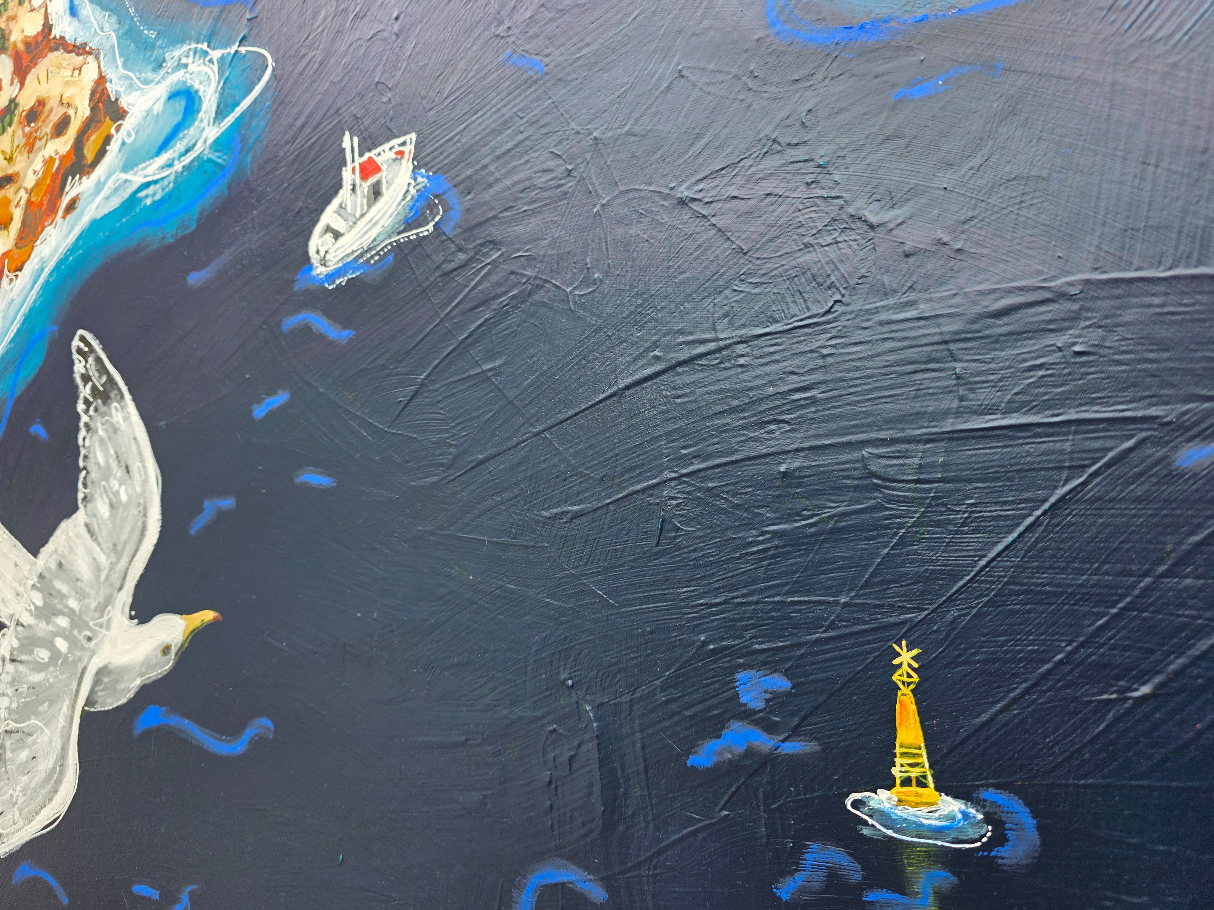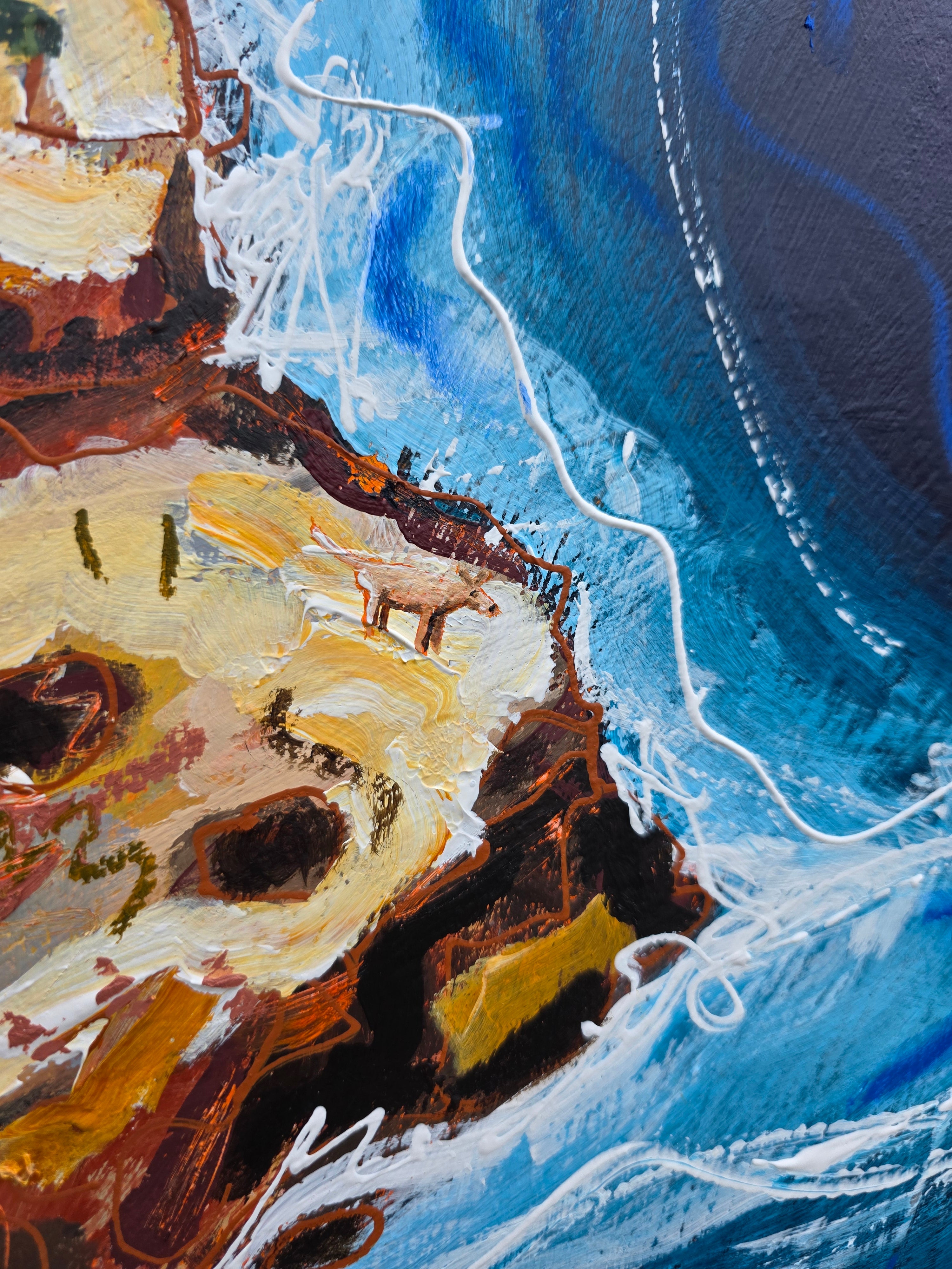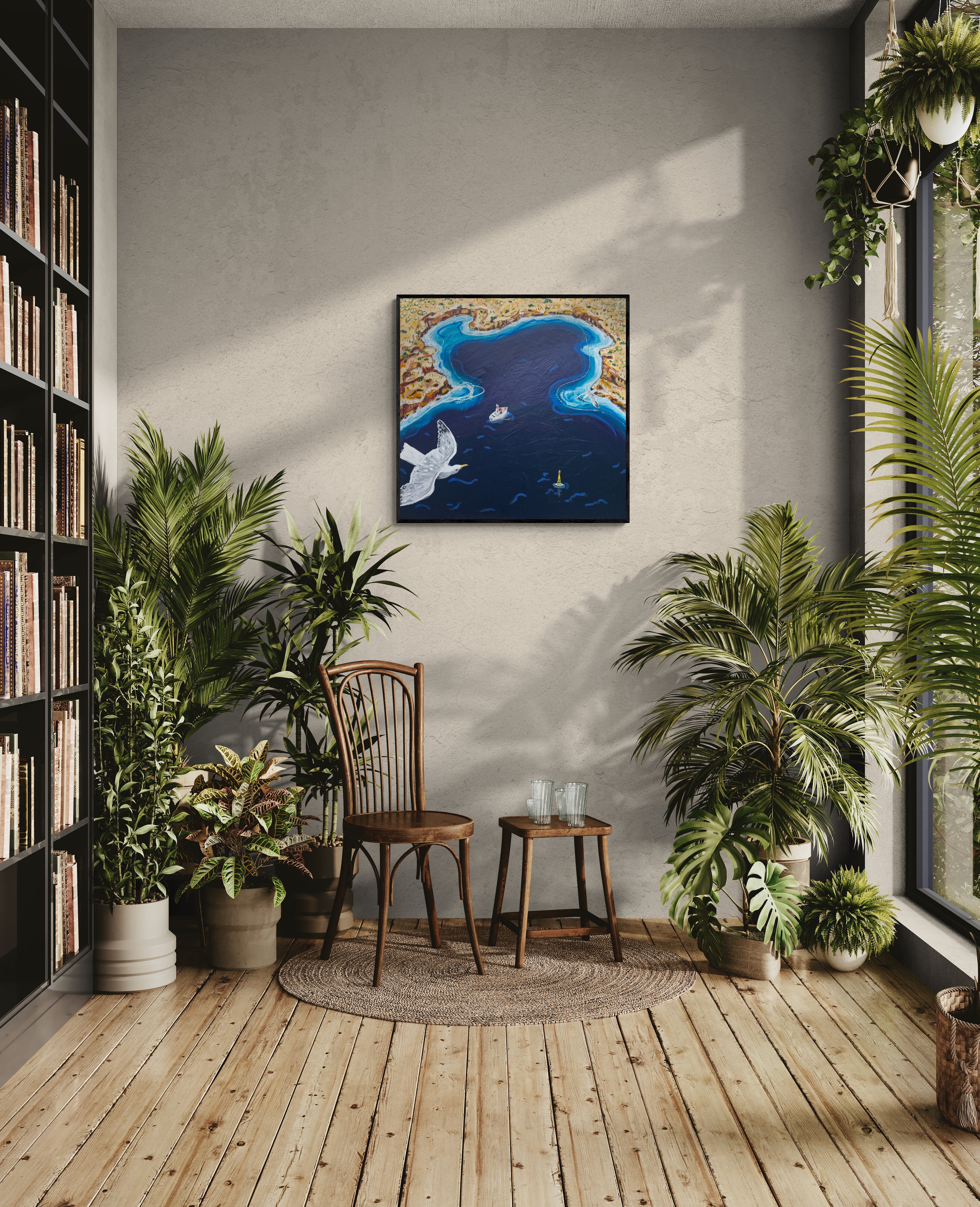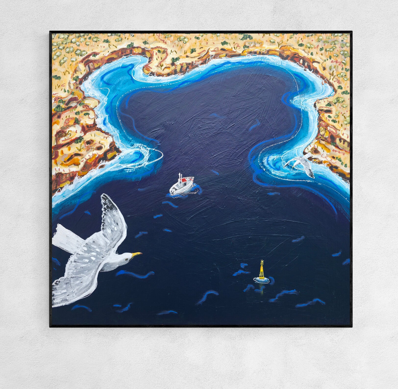 94 x 94cm | Acrylic and oil stick on canvas | Framed in black painted pine | Ready to hang
