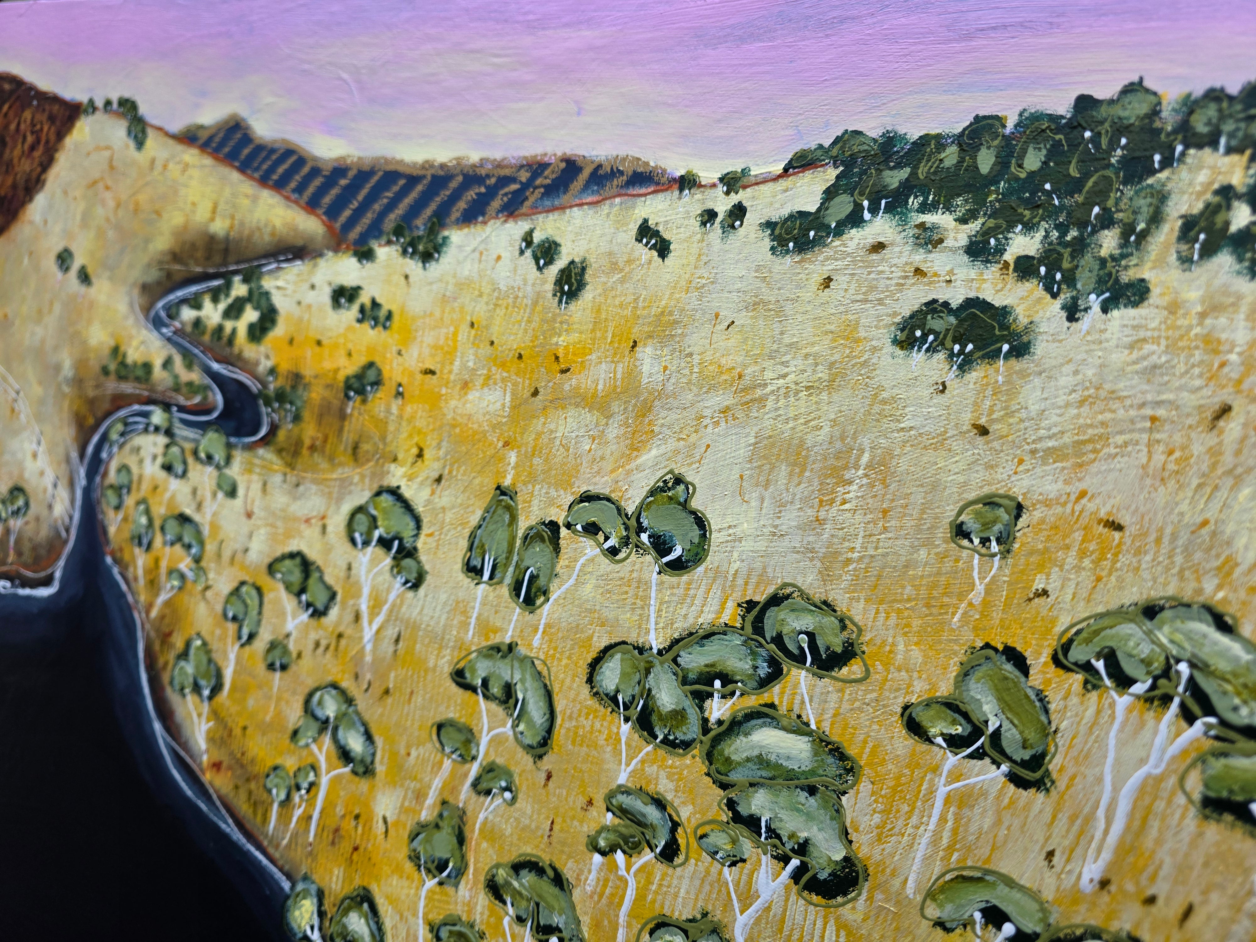Sam is a Western Sydney based artist, practicing for over 10 years. Primarily focusing on landscape as subject matter Sam explores the diverse Australian environment, its colours, shapes, textures, patterns and the stories and memories of this place and the people within it.