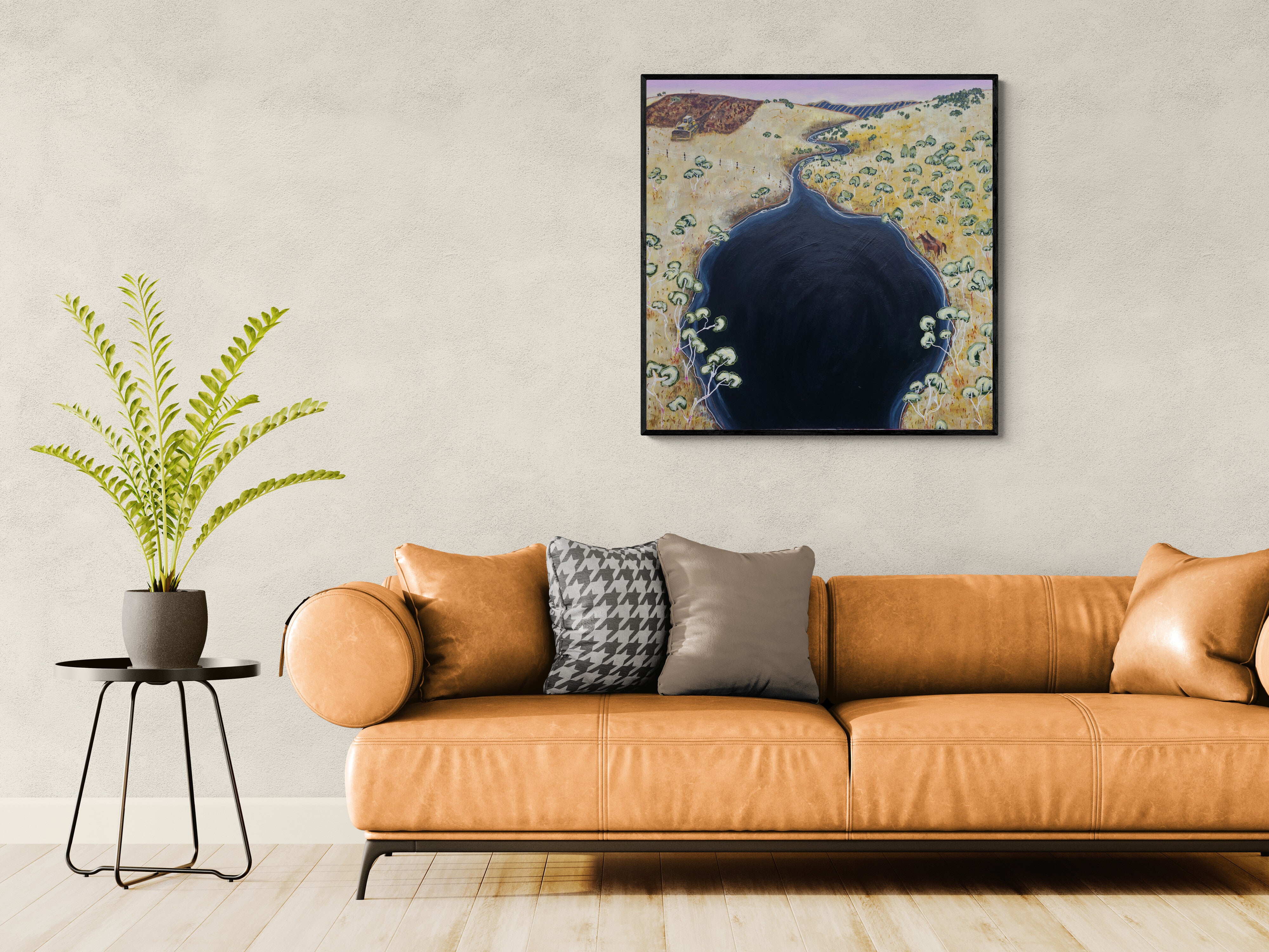 94 x 94cm | Acrylic and oil stick on canvas | Framed in black painted pine | Ready to hang