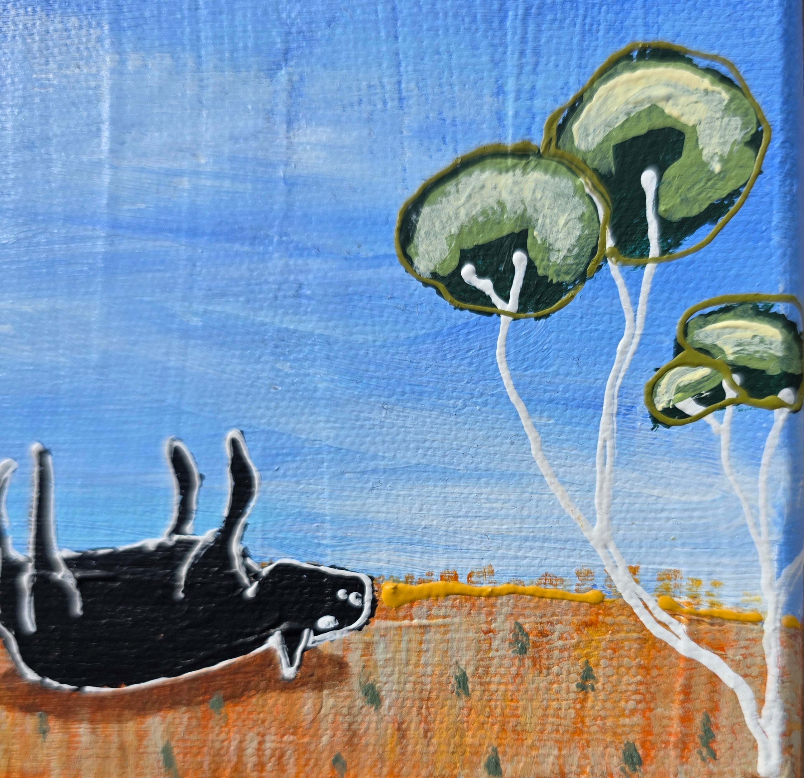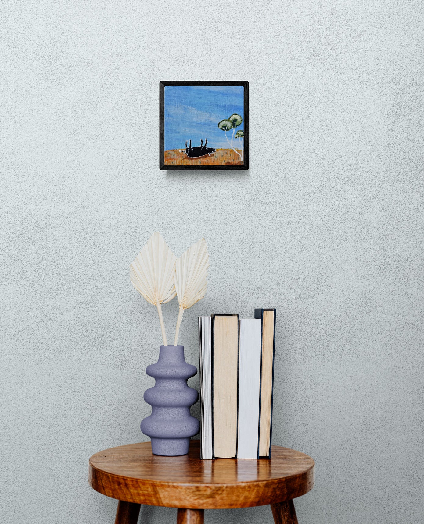 17 x 17cm | Acrylic and oil stick on canvas | Framed in black stained timber | Ready to hang