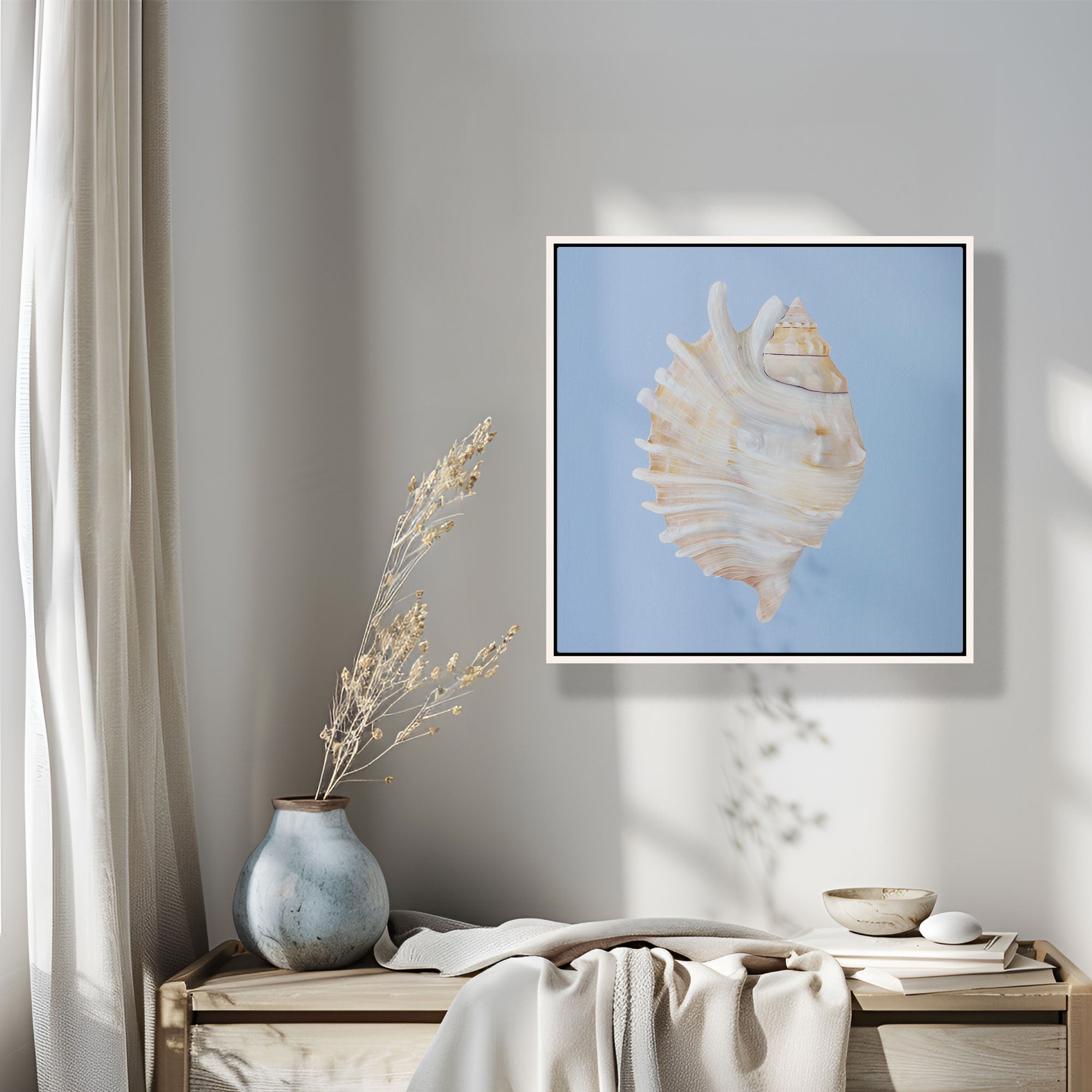 33 x 33cm. Acrylic on canvas, framed in white timber.
