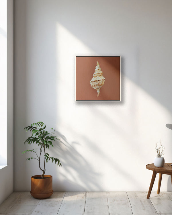 33 x 33cm. Acrylic on canvas, framed in white timber.