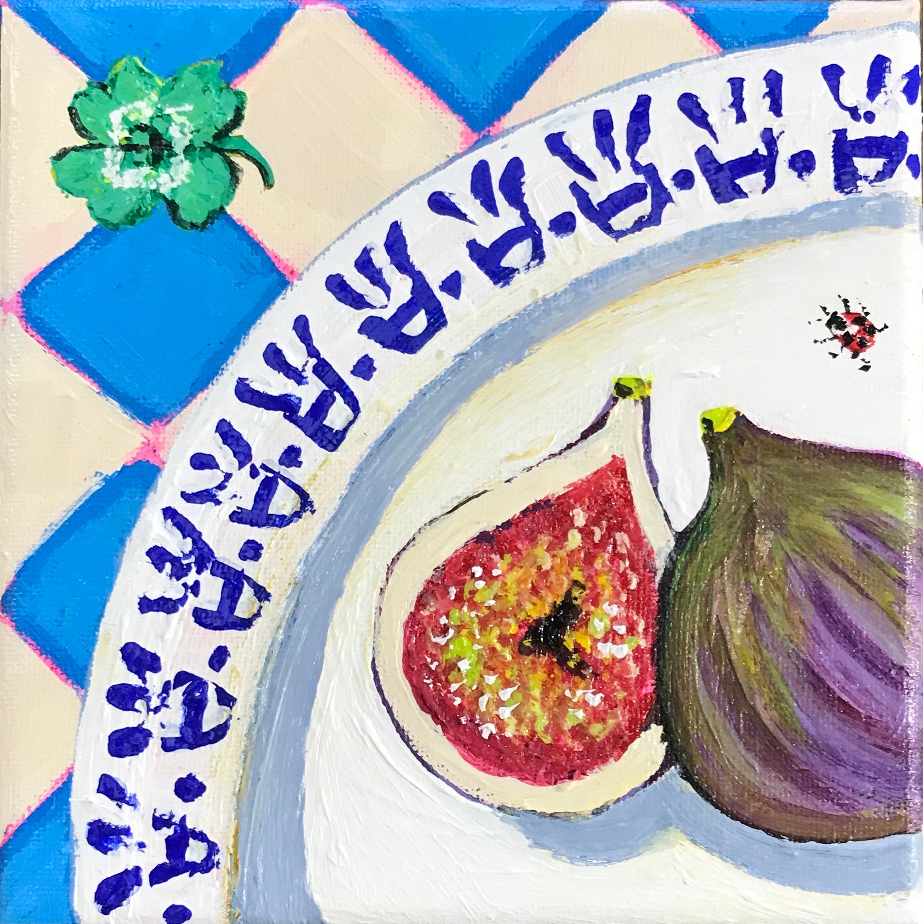 This piece is part of the Secret Santa Christmas exhibition. 100 Artworks are up for grabs, but the artist's identity remains hidden until after you've made a purchase and received the piece. Can you guess who the artist might be?