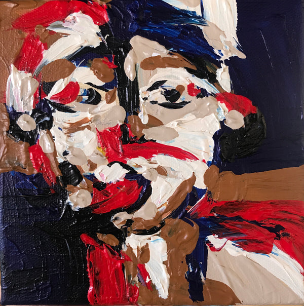 This piece is part of the Secret Santa Christmas exhibition. 100 Artworks are up for grabs, but the artist's identity remains hidden until after you've made a purchase and received the piece. Can you guess who the artist might be?