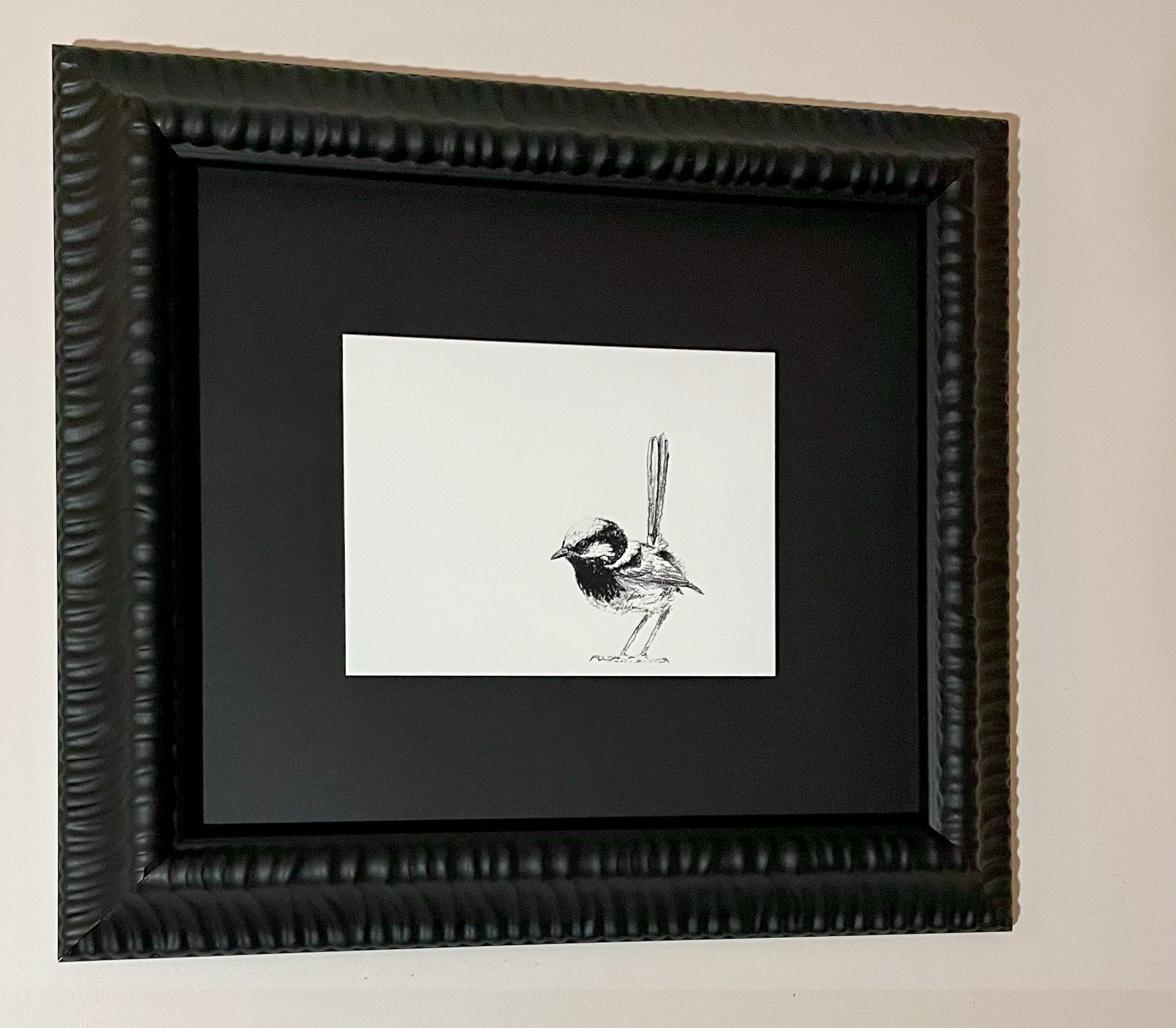 46 x 40cm. Charcoal sketch on 100% cotton vellum. Framed in Black Italian Moulding