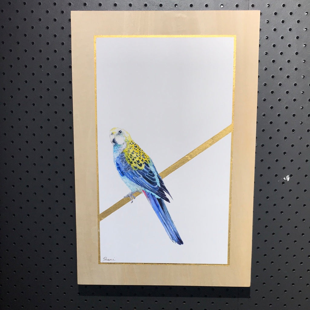 30 x 45cm. Acrylic paint and 24kt Gold Leaf on timber panel.