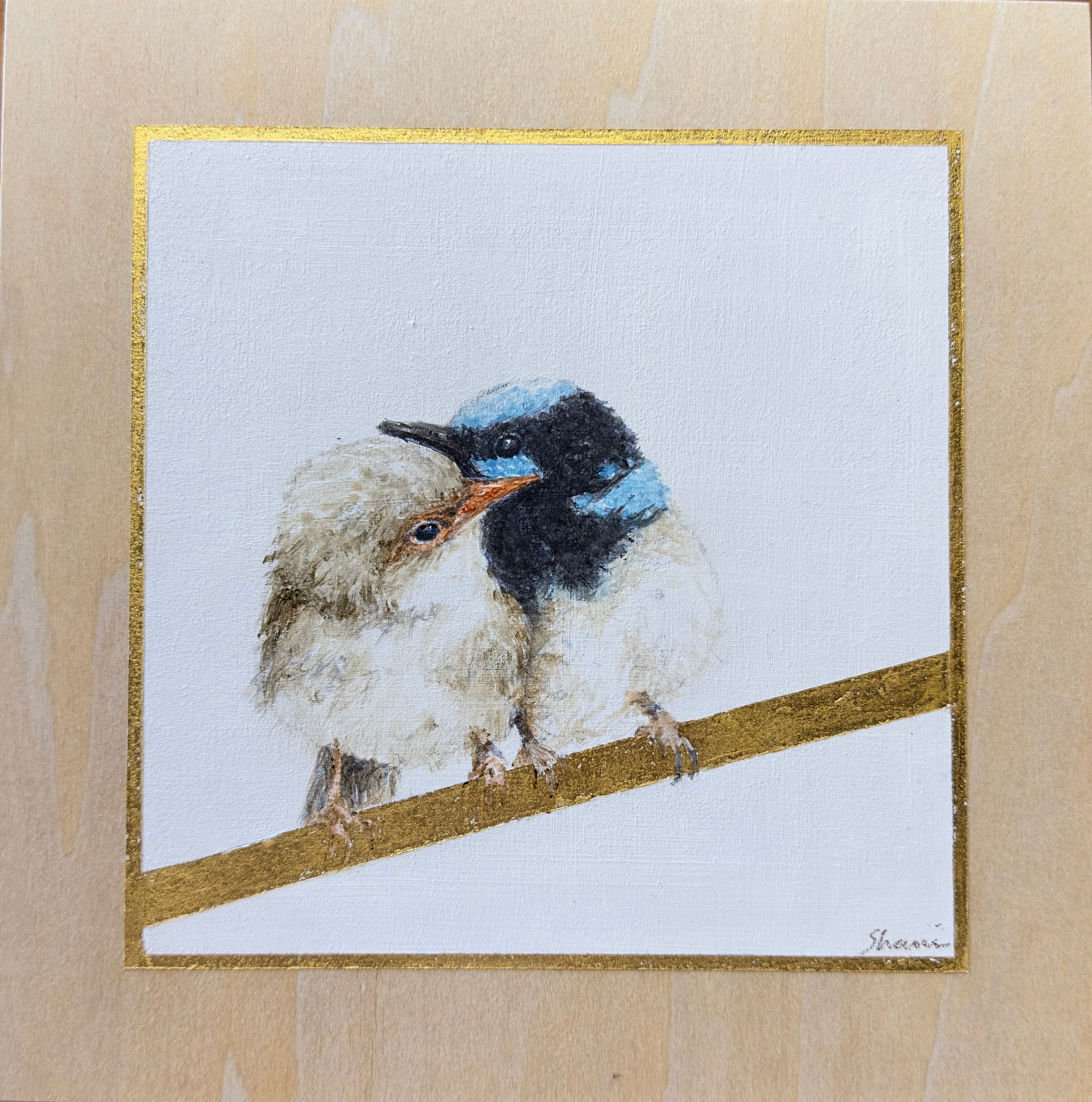 20 x 20cm.  Acrylic paint and 24kt Gold Leaf on timber panel.
