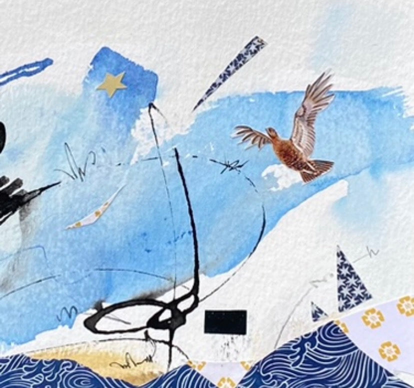30 x 30 cm | Watercolour, ink, collage on paper | Framed in white, under glass | Ready to hang