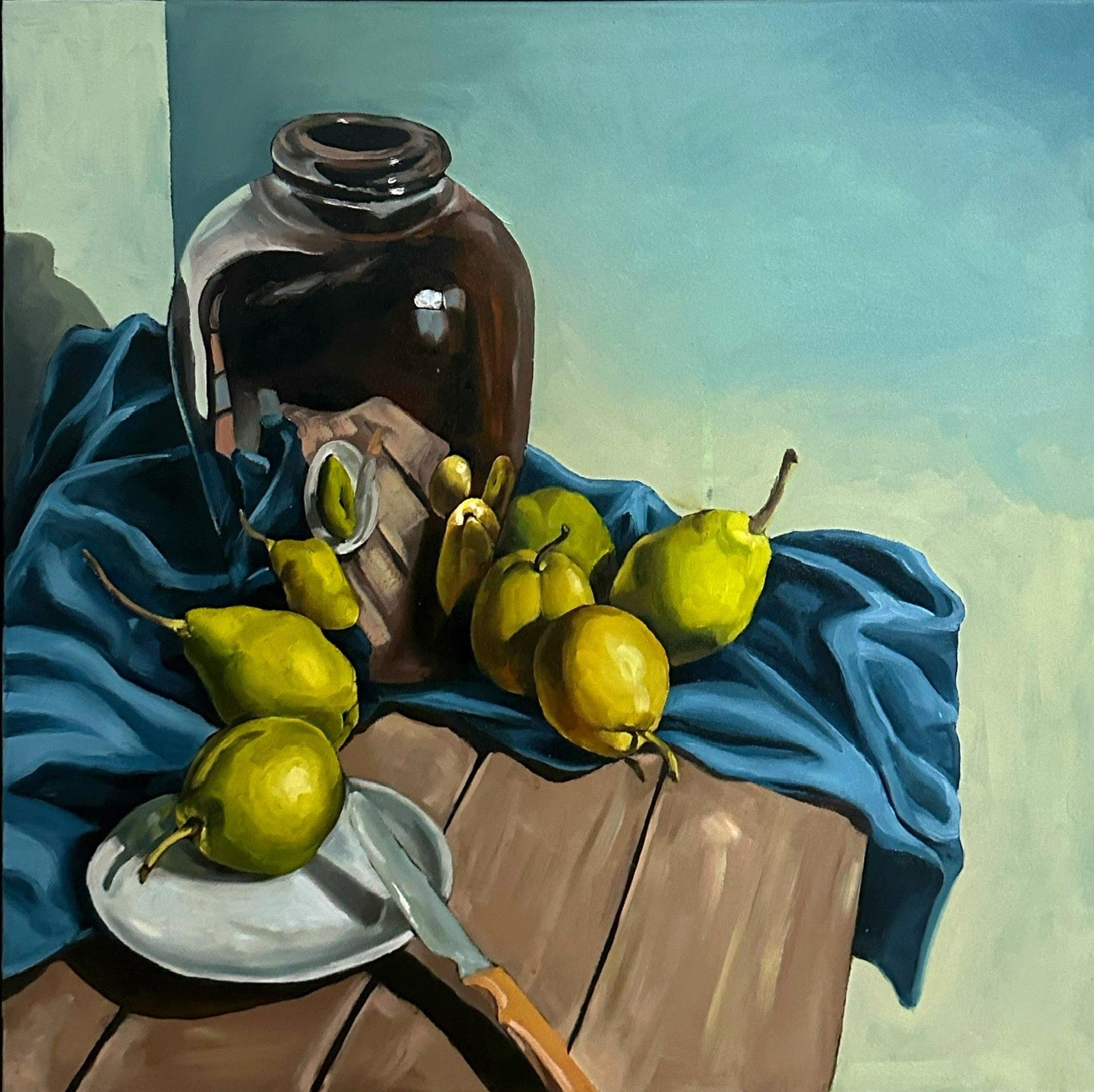 60 x 60cm. Oil on canvas framed in tasmanian oak.