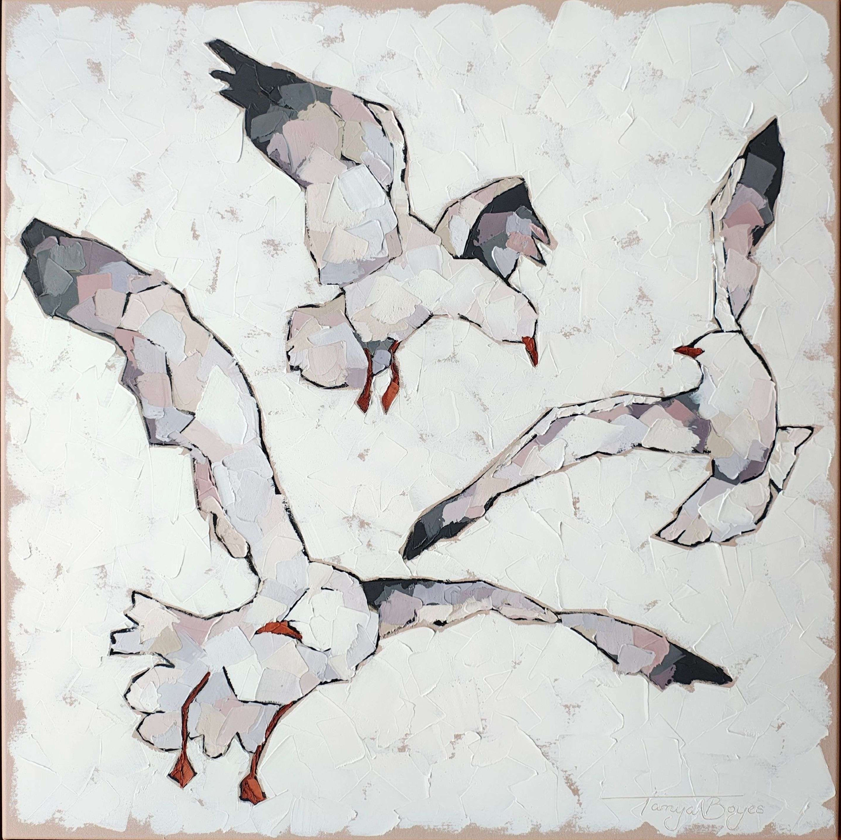 She continues to explore and refine her artistic voice, creating work that reflects both her connection to nature and the personal journey that brought her to painting. Working from the home she shares with her husband, three children, and a spirited border collie, Tanya’s practice is shaped by the rhythms of family life and the calm she seeks through art.