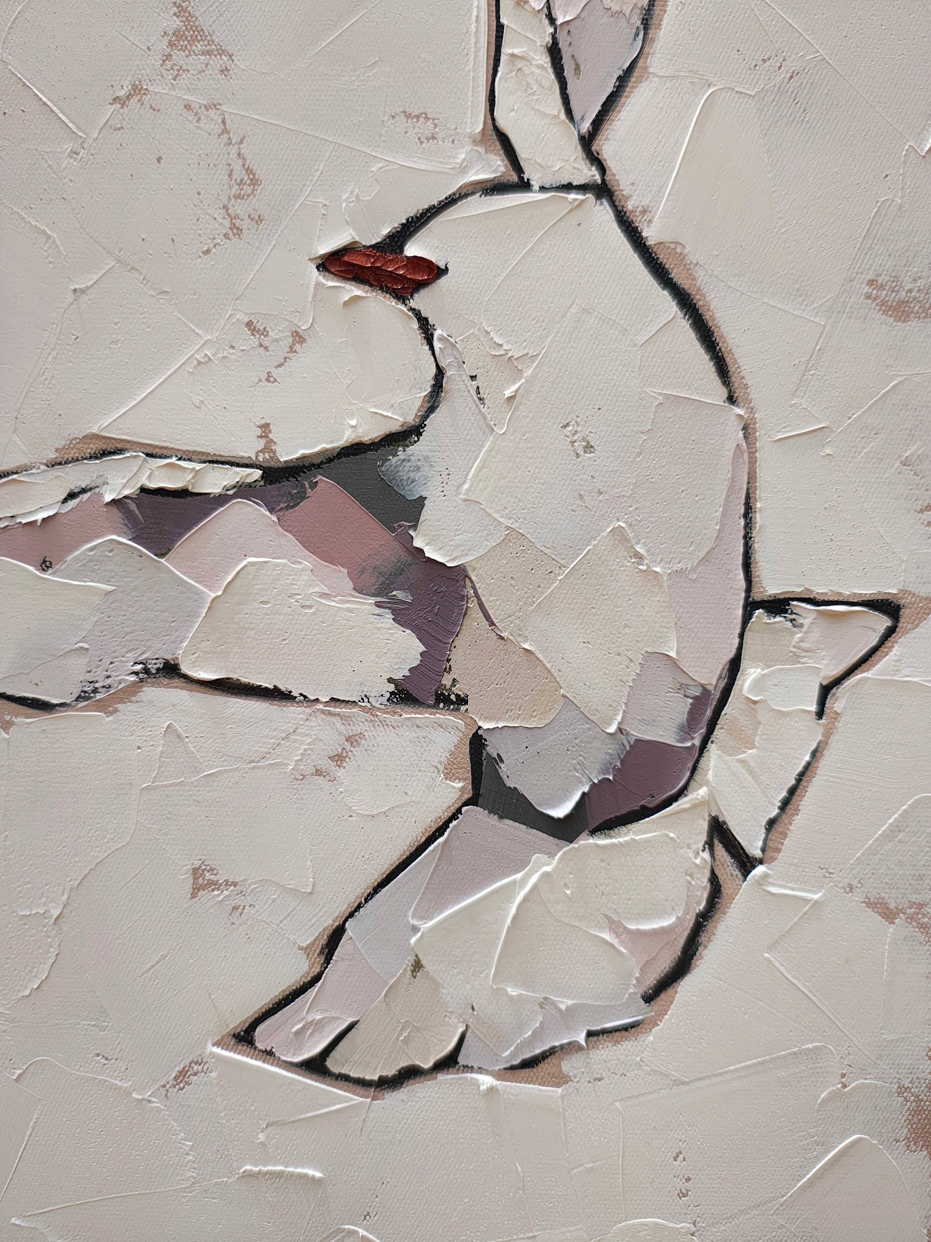 A passionate creative at heart, Tanya has spent her career honing an eye for detail, balance, and beauty. For over 20 years, she worked as a hairstylist in the Toowoomba region, cultivating a refined aesthetic and a deep appreciation for the subtle interplay of texture, tone, and form. Her love for visual harmony led her to study interior design, enriching her understanding of space, colour, and composition- elements that now quietly inform her artistic practice. Deeply inspired by the beauty of native Australian birdlife and flora, Tanya has developed a distinct, stylized approach. Her work celebrates the wild elegance of the natural world, translating delicate forms into minimalist compositions with muted tones and expressive texture.