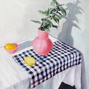43 x 43cm. Oil on board, framed in oak