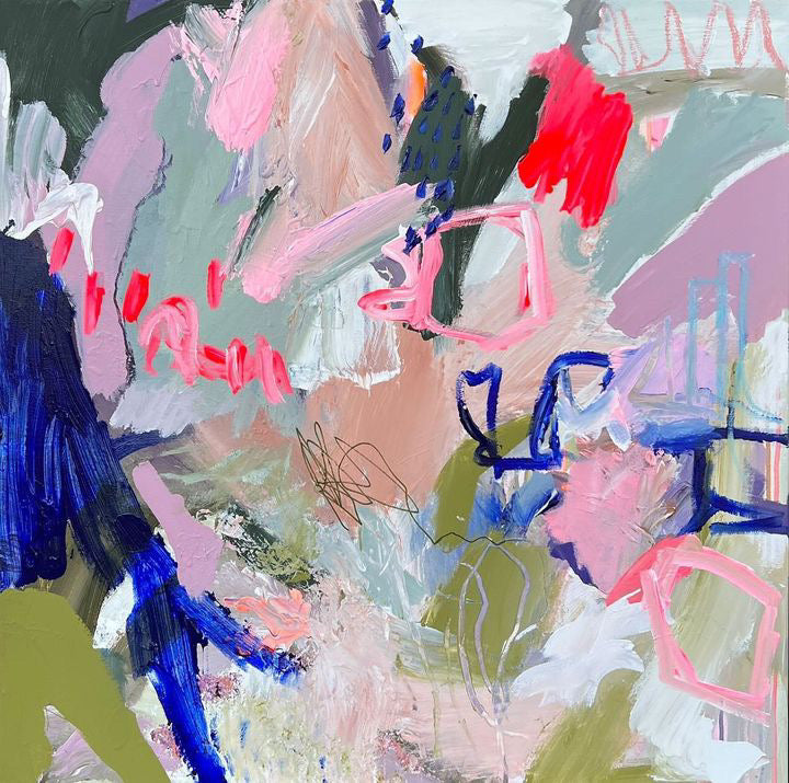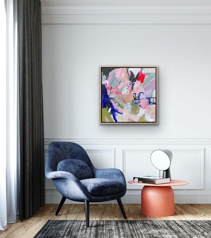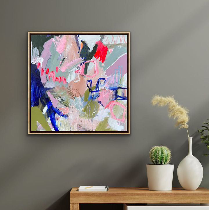 73 x 73m. Mixed media on canvas, framed in Tasmanian oak