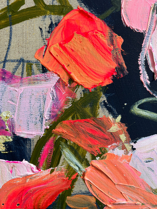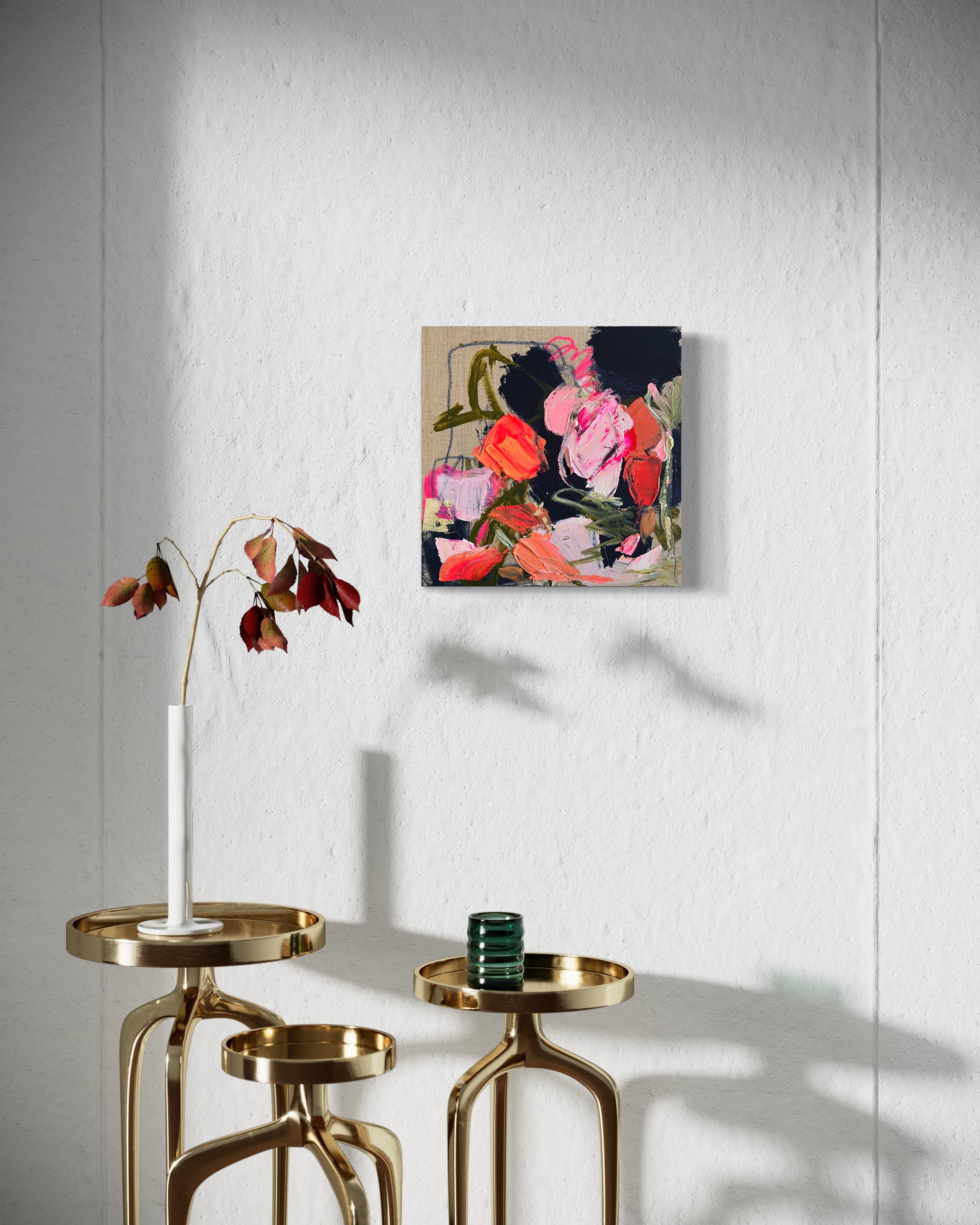 33 x 33cm. Mixed media on linen, framed in Victorian ash.