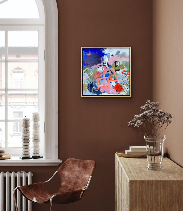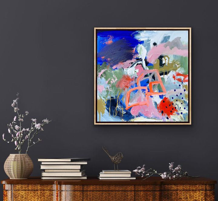 64 x 64m. Mixed media on canvas, framed in Tasmanian oak